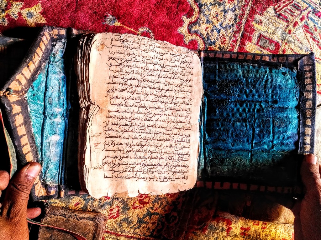سألتُ أمين المكتبة عن الحفاظ على المخطوطات وترميمها، وما إذا كان هناك أي دعم خارجي. فرد بأن الحفاظ على المخطوطات هو في الأساس مسؤولية العائلات نفسها. وقد قدم اليونسكو دعماً خارجياً، حيث صنفت شنقيط على قائمة التراث العالمي منذ عام ١٩٩٦، لكن أمين المكتبة أوضح أنه من الصعب مواءمة مبادرة اليونسكو مع مطالب العائلات التي تملك المخطوطات عندما يتعلق الأمر بعرض المخطوطات في متحف محلي.