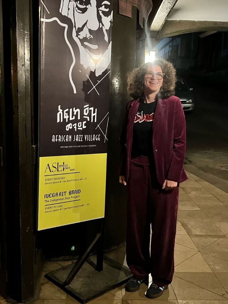 لنعود إلى الموسيقى. فبينما فاجأتني التغيرات السريعة في المدينة، إلا أنني سعدتُ باكتشاف شيء مألوف: موسيقى الجاز! كان حلماً أن أرى موسيقى الجاز الإثيوبية تُعزف مباشرةً في أديس أبابا، وقد تحقق في كافيه الجاز الأفريقية، التي يملكها الموسيقي الأسطورة مولاتو أستاتكي نفسه. كان مولاتو هناك في تلك الأمسية، وكنت سعيدة أنني استطعت أن أسلم عليه!